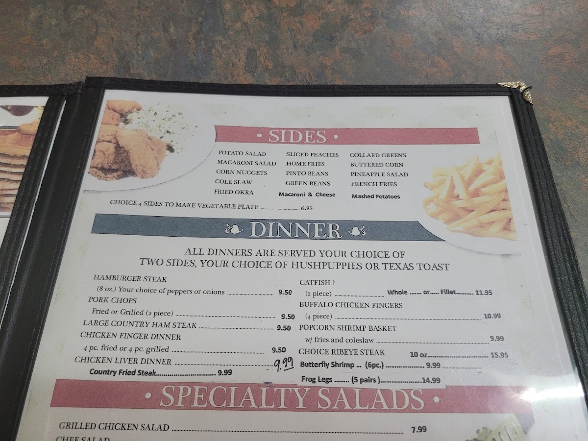 What I like most is how the menu balances the familiar with just enough variety to keep things interesting. You can go light with a fresh salad or sandwich, or dive straight into a full, stick-to-your-ribs meal with all the sides. And don’t skip the desserts-there’s usually something sweet calling your name, whether it’s a slice of pie or a rich homemade cake that pairs perfectly with a fresh cup of coffee.